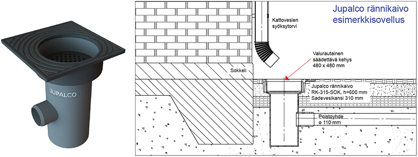315 mm:n rännikaivoon kiinnitetään valurautainen