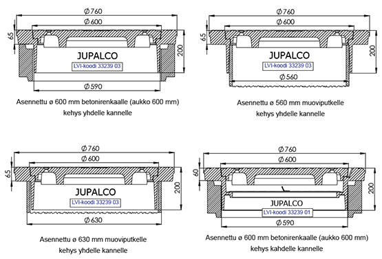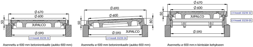 | Kehys / kor.rengas ø 600 h=50mm | 3323932 | | Tarkoitettu ø 600 mm aukolle / kehykseen |