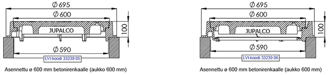 Kehys ø 600 h=100mm Yhdelle kannelle | 3323905 | | Kehys ø 600 h=100mm Kahdelle kannelle | 3323906 | |