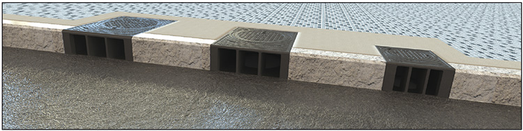Säätörengas ø 300 mm muoviputkelle on integroitu kitakehyksen rakenteeseen. Huomaa viistonielu, joka auttaa veden virtausta ja puhdistaa kidan hiekasta.