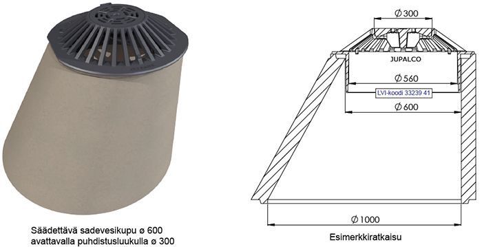 Säädettavä sadevesikupu ø 600