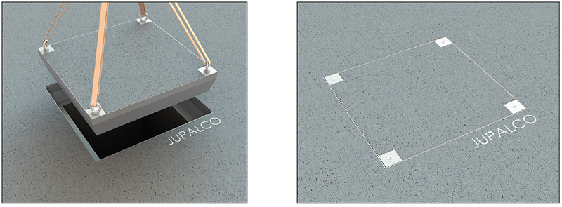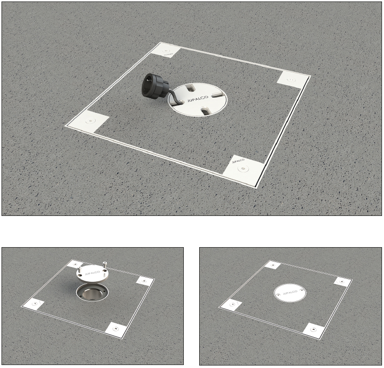 Pinnoitettava kansisto, jossa kannen keskellä on läpivienti. Sopii messuhalleihin tai torialueille joissa tekniikkakaivoista on tuotava esim. sähkökaapeleita tai vesiletkuja lattiapinnan yläpuolelle. Kansisto voidaan sulkea kokonaan peitelevyn avulla. Kysy myynnistämme eri kokovaihtoehtoja..