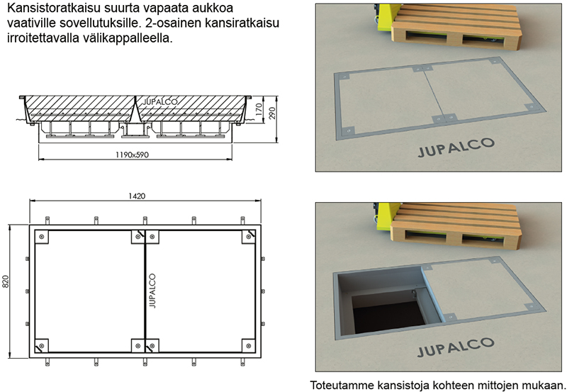 Jupalcon pinnoitettavat kansistot ovat valmistettu teräslevystä tai alumiinista. Niissä on mallista riippuen valmiina kuormitusta vastaavat raudoitukset.
