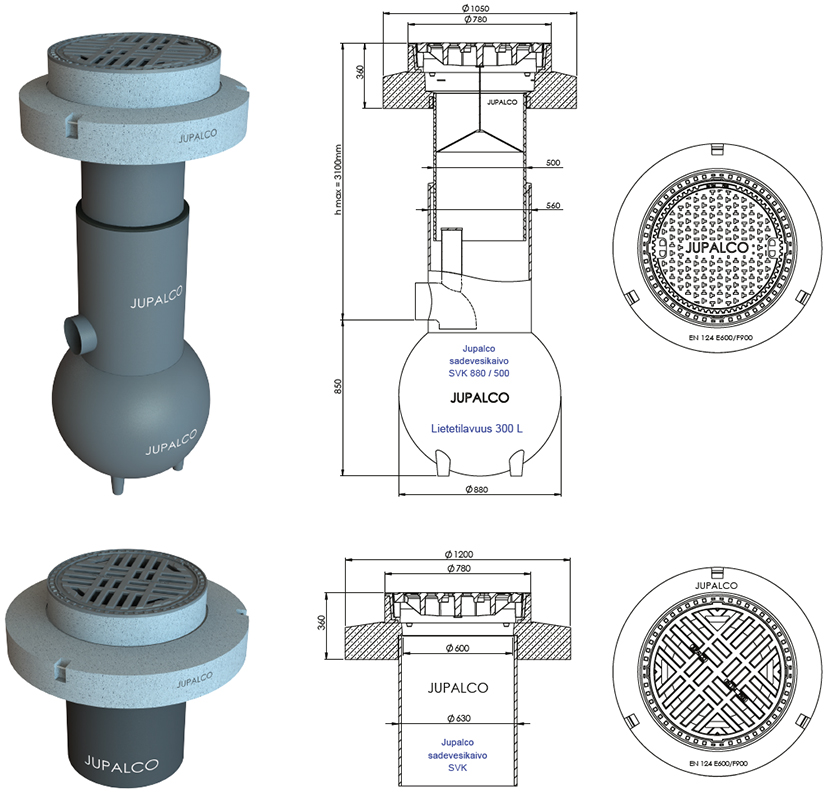ø 315, 500, 560 mm ja 630 mm muoviputkille