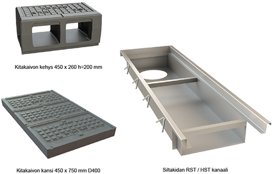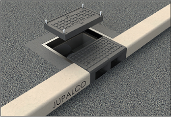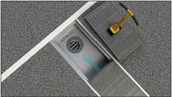 Kuva 4. Siltakidan kanaalin huoltoa varten kansielementit voidaan avata ja sulkea. Suosittelemme kansien käsittelyyn Jupalco 1600 PLUS magneettista kaivonkannen nostolaitetta.
