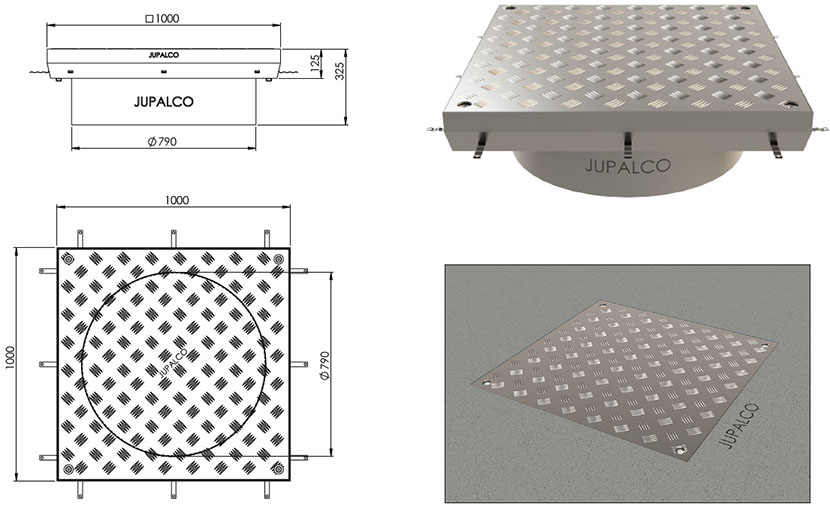 Neliökansisto 1000 x 1000 liukuestekannella | D400 (40tn) | 1000 x 1000 | 780mm (pyöreä) | 330 | 2604344 | |