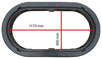 Jupalcon ovaalikaivonkansiston saa myös yhdellä isolla 1200 x 600 mm:n