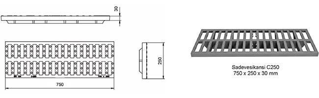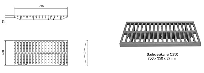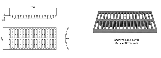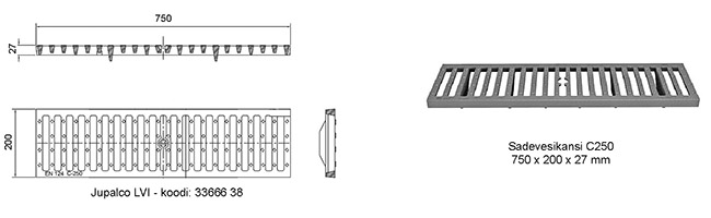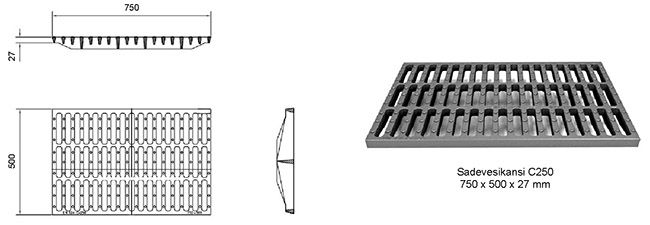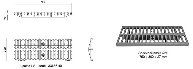 Valurautaiset irtosadevesikannet linjakuivatuskouruihin